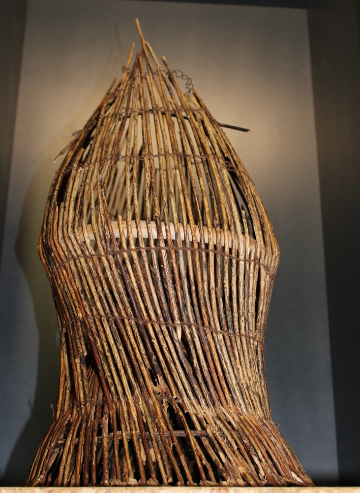 Portate e trame di salice non decorticato; armatura costituita da un fascio di fili di ferro.