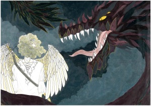 Il nome Michele deriva dall’espressione Mi-ka-El che significa “chi è come Dio?”. L’arcangelo Michele è ricordato per aver difeso la fede in Dio contro le orde di Satana. Michele, comandante delle milizie celesti, dapprima accanto a Lucifero (Satana) nel rappresentare la coppia angelica, si separa poi da Satana e dagli angeli che operano la scissione da Dio, rimanendo invece fedele a Lui, mentre Satana e le sue schiere precipitano negli Inferi. L’arcangelo Michele è rappresentato in forma di guerriero, infatti porta una spada.